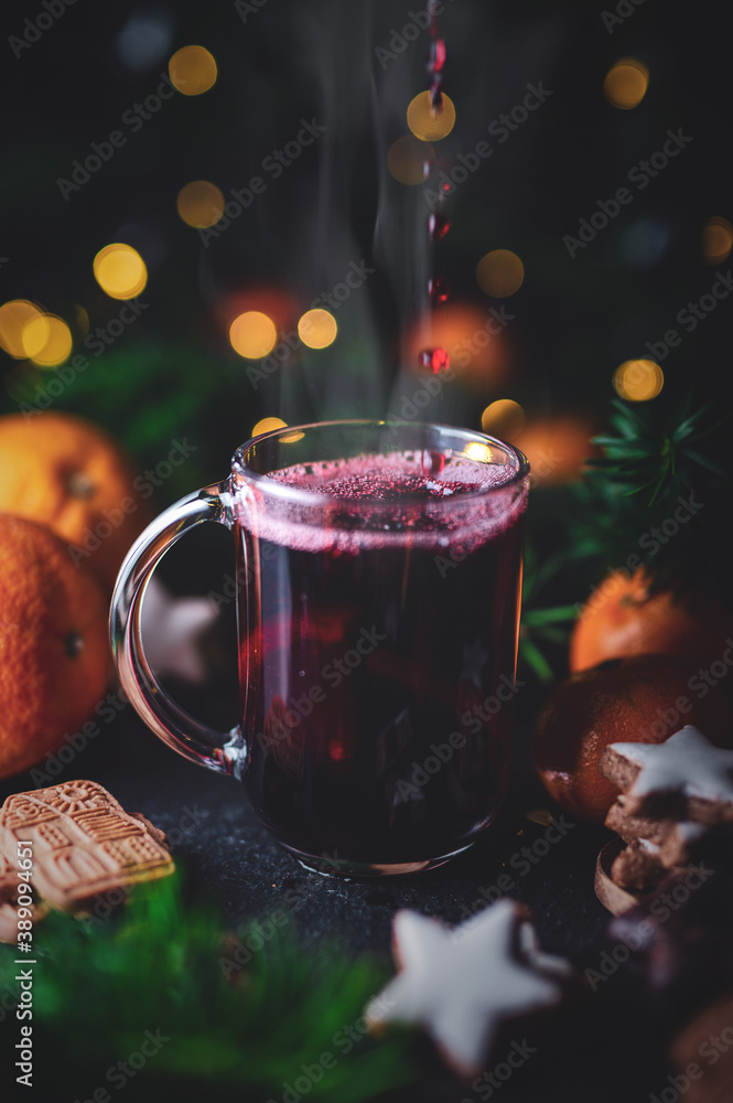 Heißer Glühwein im Glass zur Weihnachtszeit