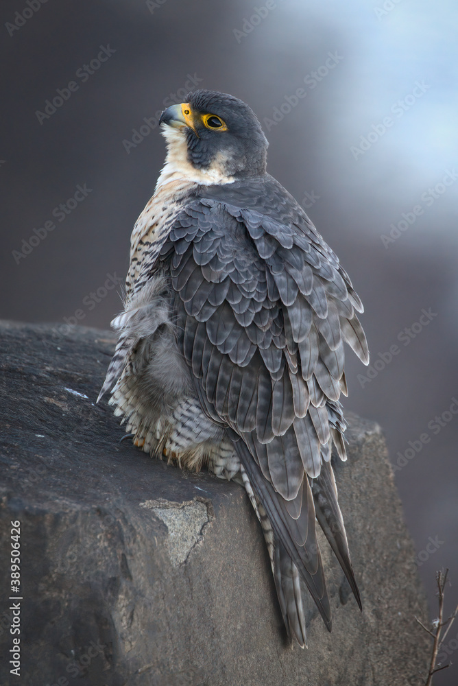 Peregrine Falcon Perched Atop a Cliff Overlooking the Hudson River In Alpine, NJ, USA