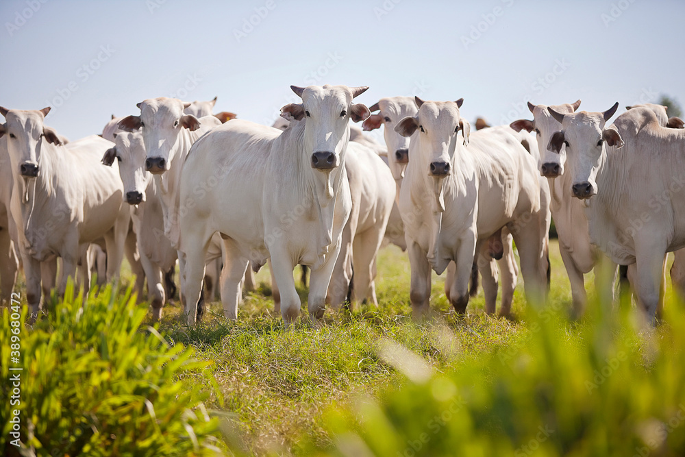 Nellore cattle grazing in the field at sunset, Mato Grosso do Sul, Brazil