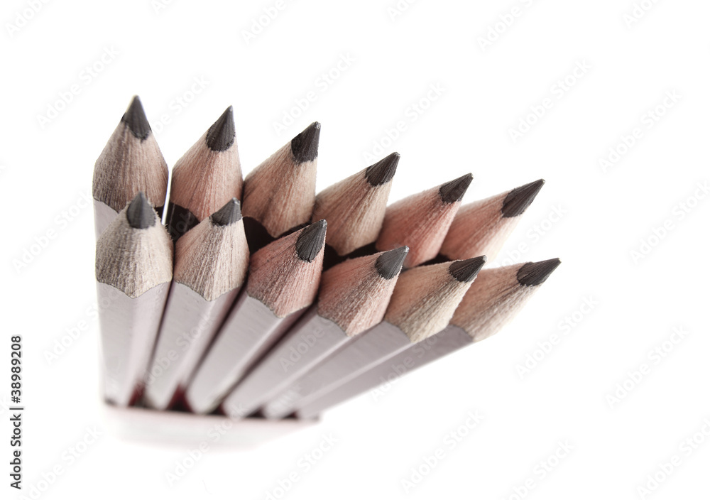 Group of pencils with strong perspective isolated on white