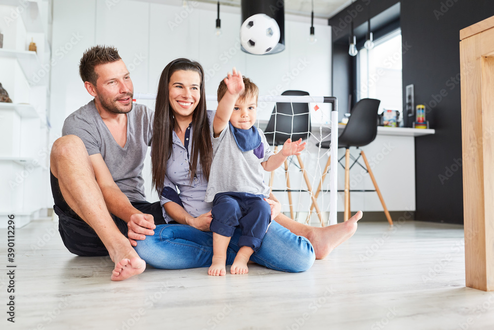 Kleinkind wirft beim Spielen mit den Eltern einen Ball