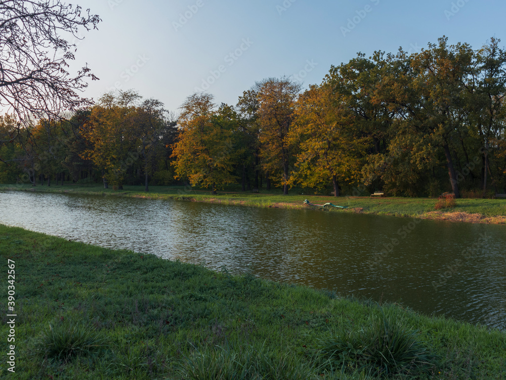 the beginning of autumn, the trees begin to gradually turn yellow, autumn landscape in Ukraine