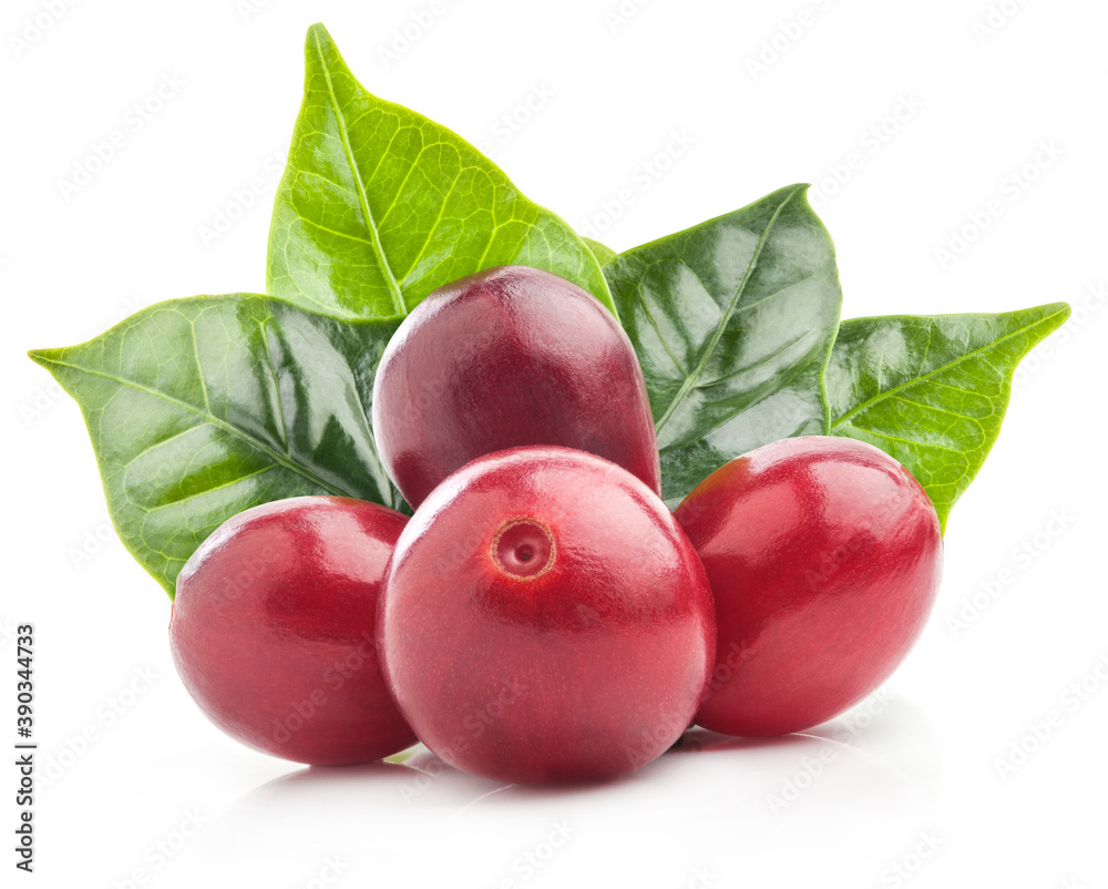 Red coffee beans isolated on white background with clipping path