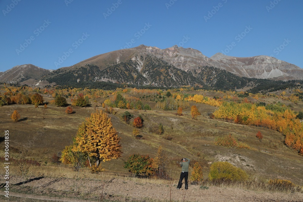 Beautiful orange and red autumn forest, many trees on the orange hills .TURKEY