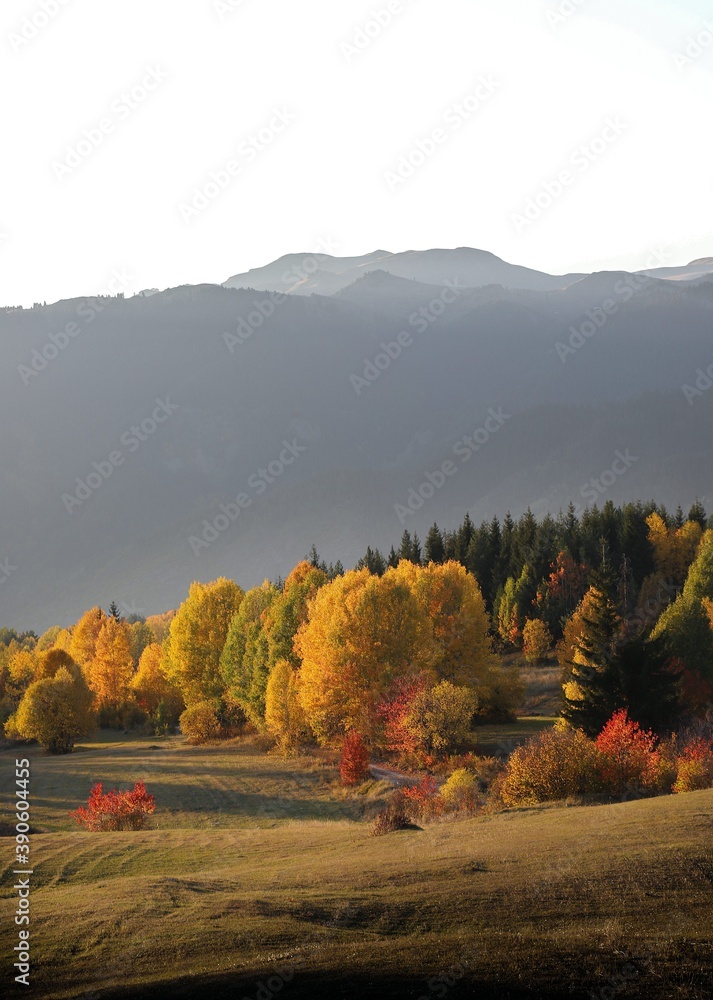Beautiful orange and red autumn forest, many trees on the orange hills .TURKEY