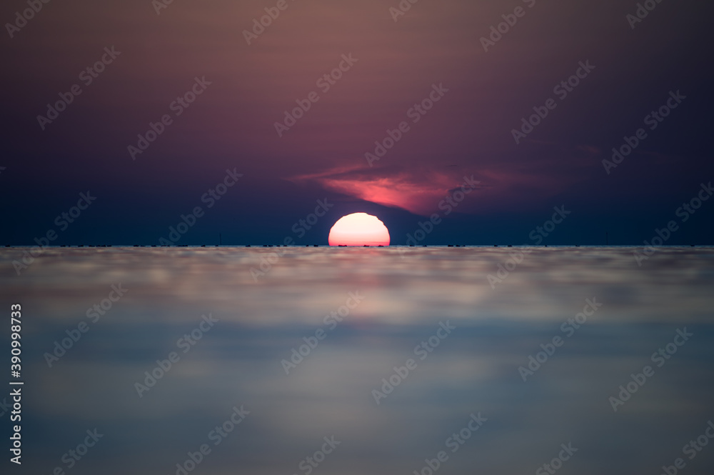 Sonnenuntergang über der Nordsee in Schleswig-Holstein, Deutschland