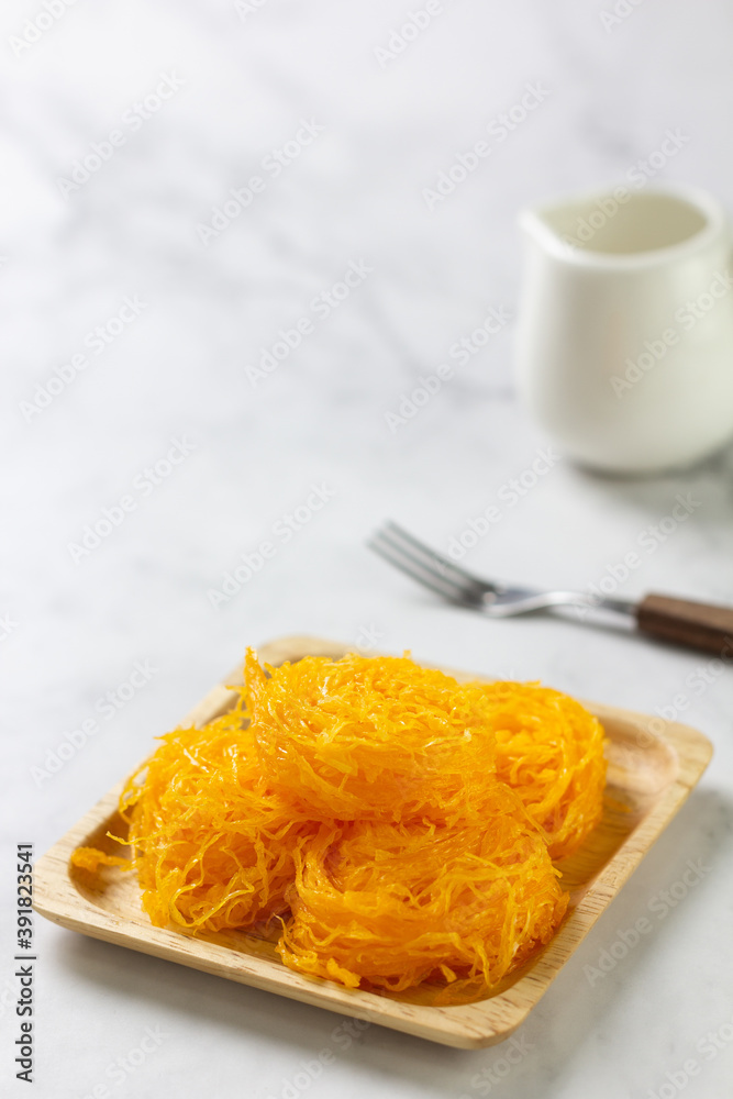 Sweet egg floss on table