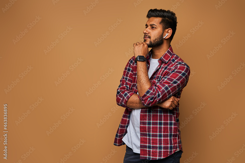 Cropped shot of beautiful Asian Muslim businesswoman is showing smart phone with isolated screen over the desk in the office.