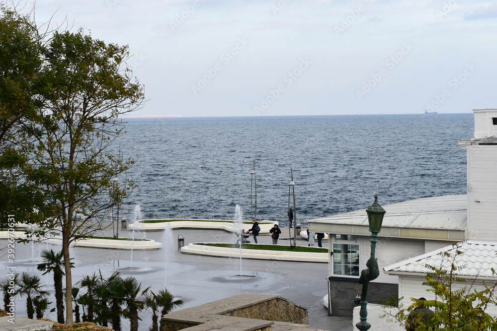 From the hill of the city park, you can see the endless expanses of the blue sea.