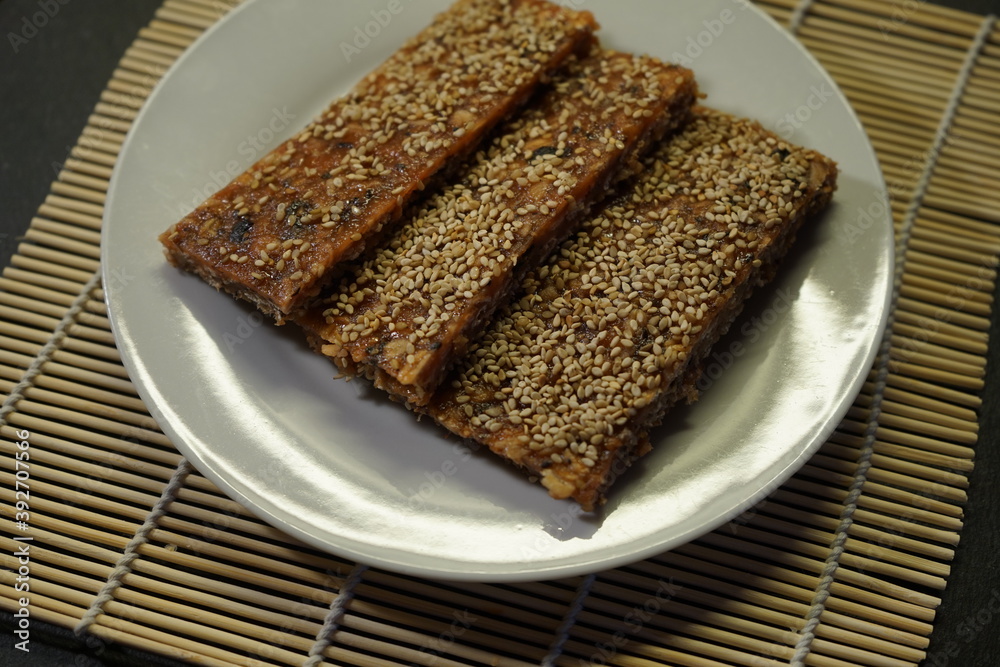 selbstgemachte Müsliriegel mit Sesam