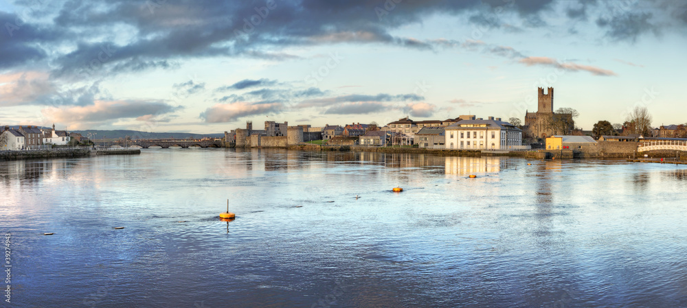 Panoramic view of Limerick City at dusk in Ireland.