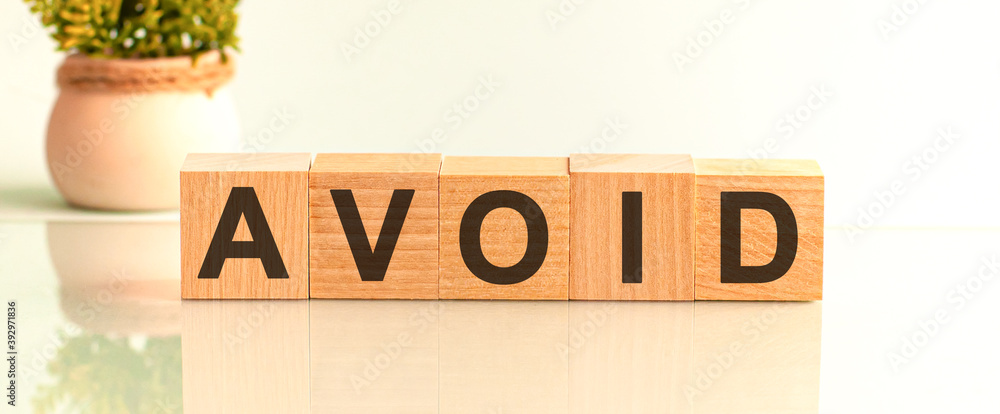 avoid motivation text on wooden blocks business concept white background. Front view concepts, flower in the background.