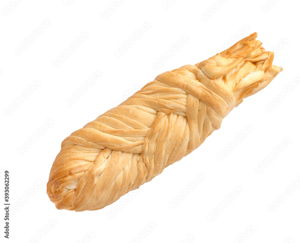 Sulugumi cheese in pigtail on white background