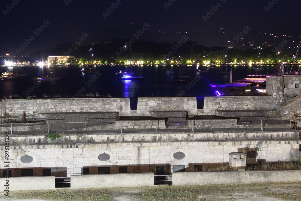 Blick auf Korfu-Stadt bei Nacht