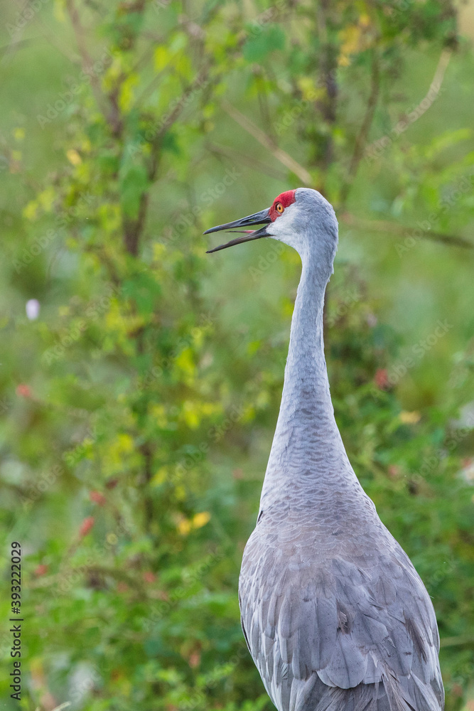 Close-up of Sandhill Cranes foraging for insects in the soft sandy soil in a pasture in Florida