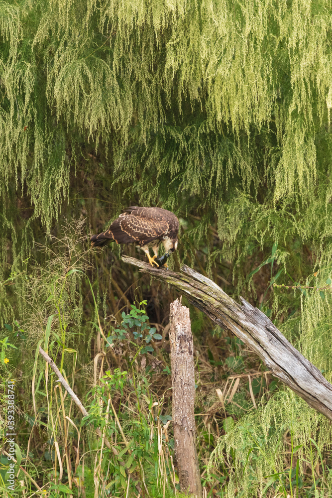 A single Snail Kite forages for the juicy Apple Snail in a wetlands park in Florida