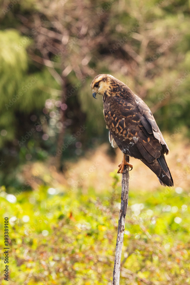 A single Snail Kite forages for the juicy Apple Snail in a wetlands park in Florida