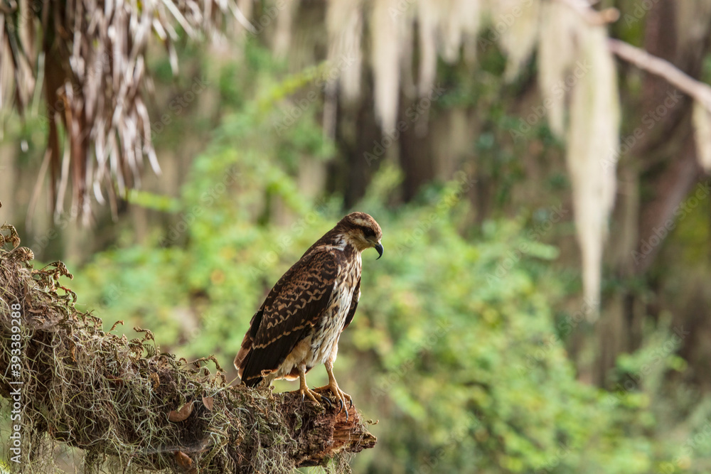 A single Snail Kite forages for the juicy Apple Snail in a wetlands park in Florida