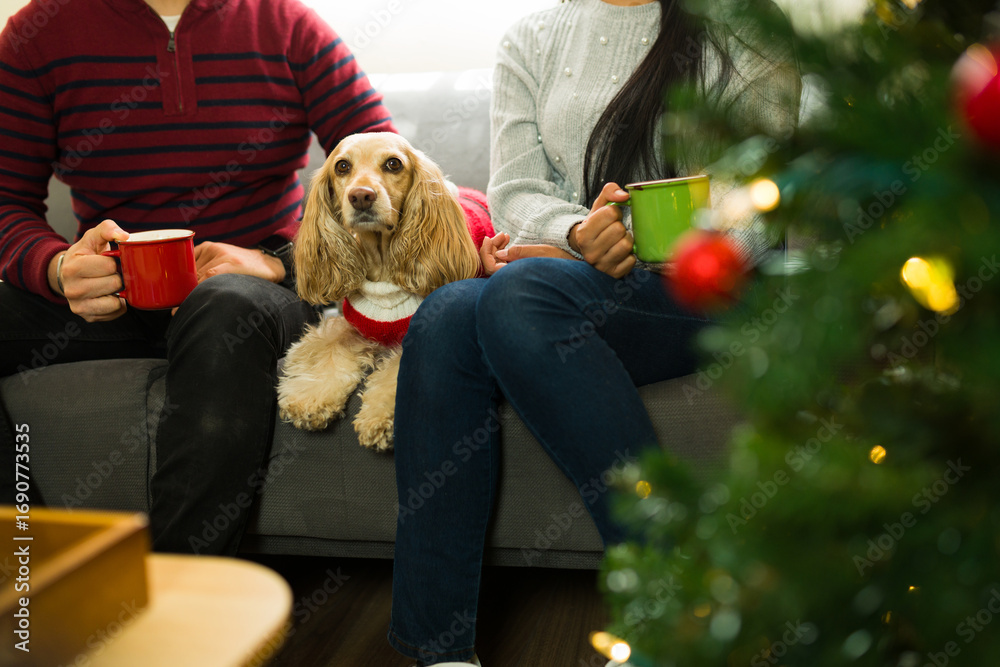 gift and greeting card wishes merry christmas background with red ribbon bow and balls isolated on white, template with blank copy space