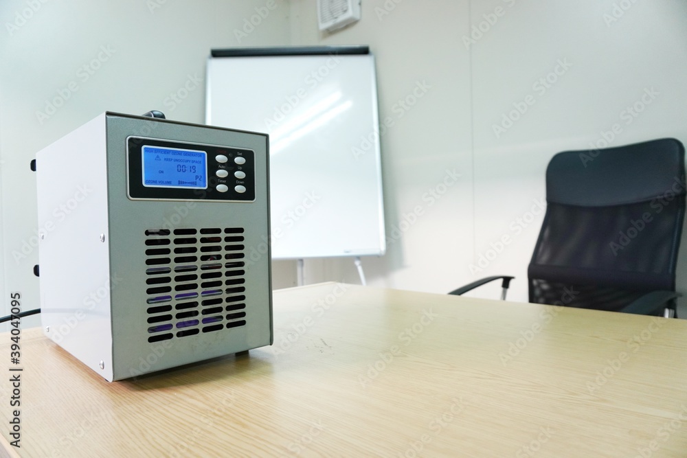 Ozone generators placed on the table in office room to cleaning and disinfection during corona-virus epidemic. (Covid 19)