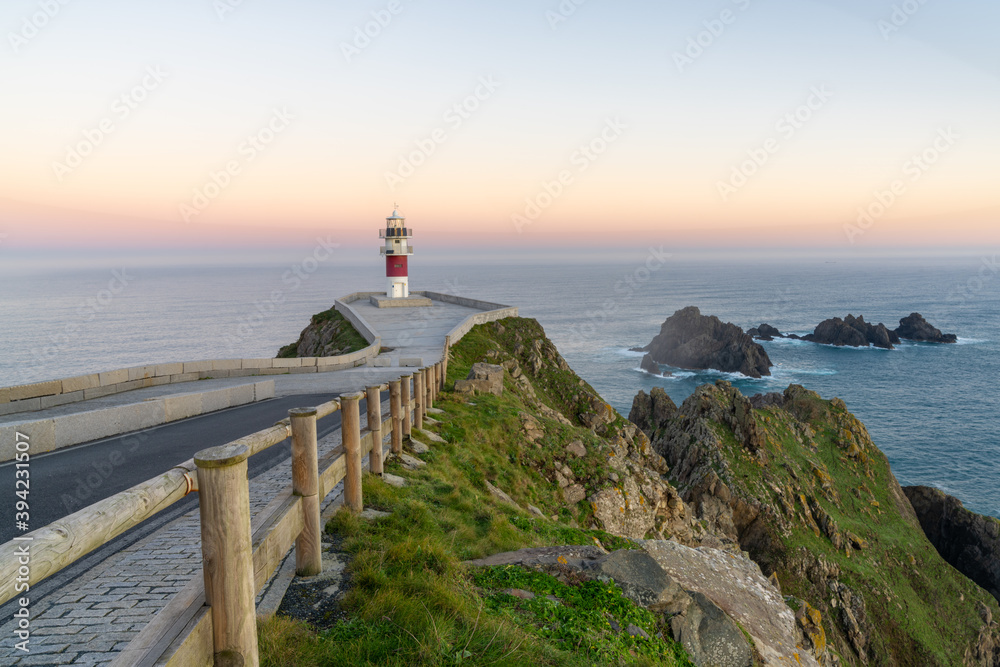 Cabo Ortegal lighthouse on the coast of Galicia at sunrise