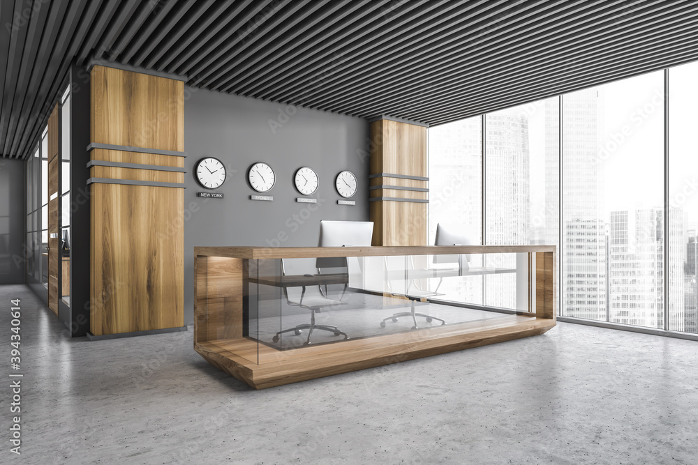 Gray and wooden office corner with reception