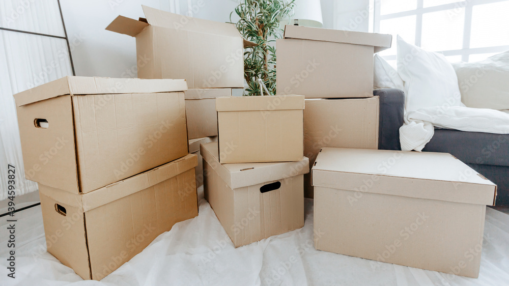 lot of cardboard boxes in the new apartment.