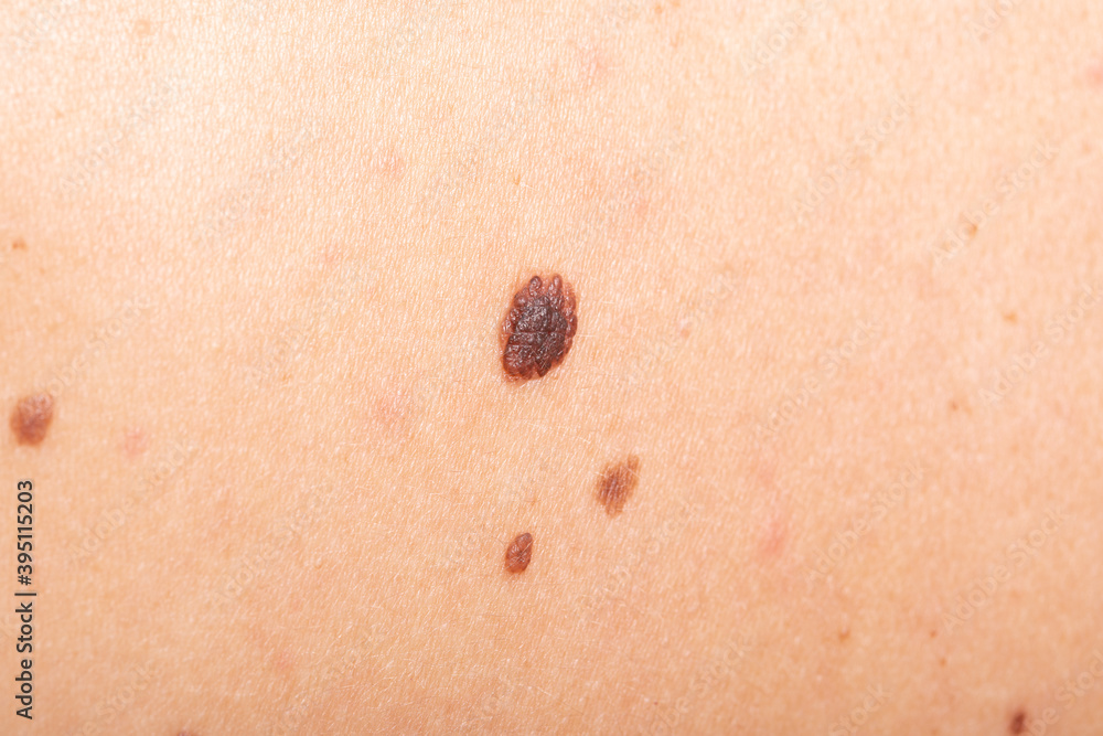 Mole closeup. Birthmark. Pink birthmark on light skin.