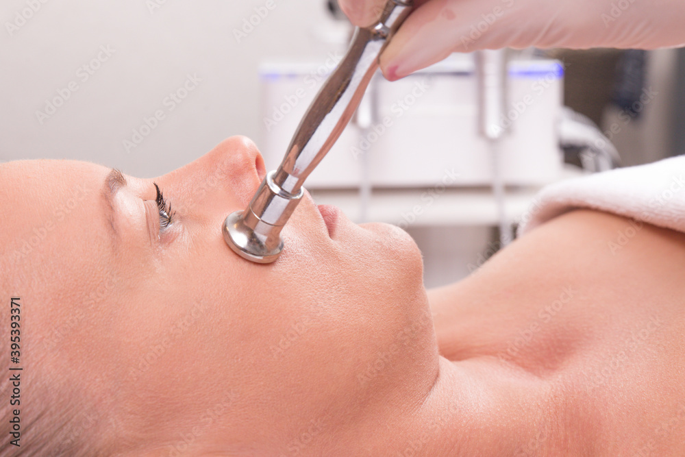 The cosmetologist makes the procedure Microdermabrasion of the facial skin