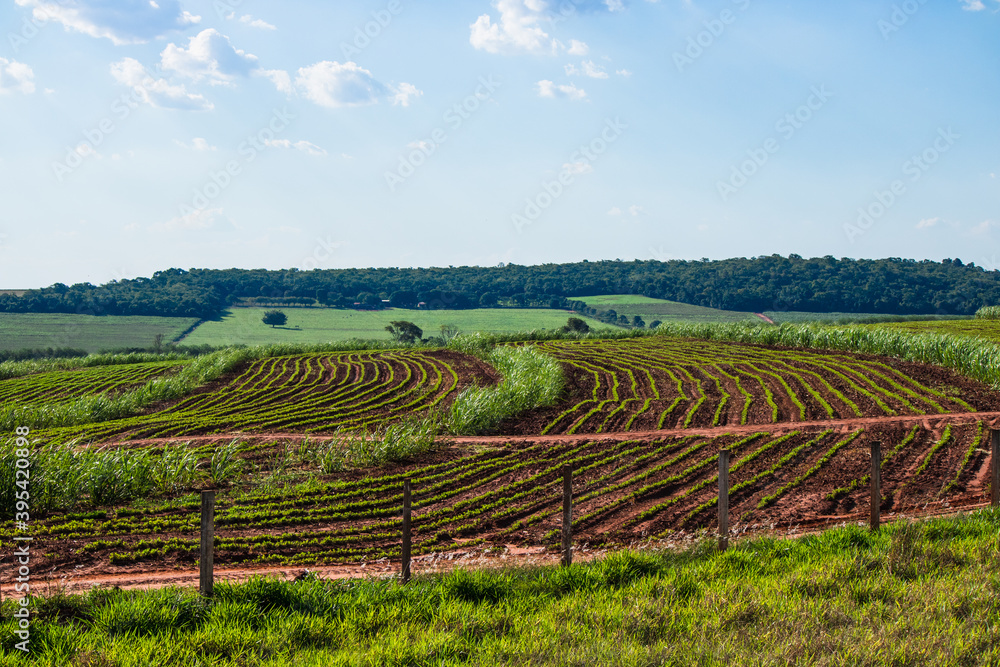 Beautiful rural plantation of sugar cane. Farm field concept image