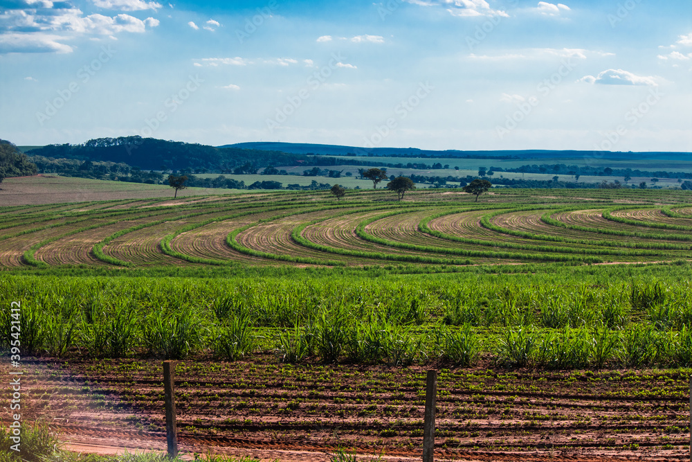 Beautiful rural plantation of sugar cane. Farm field concept image