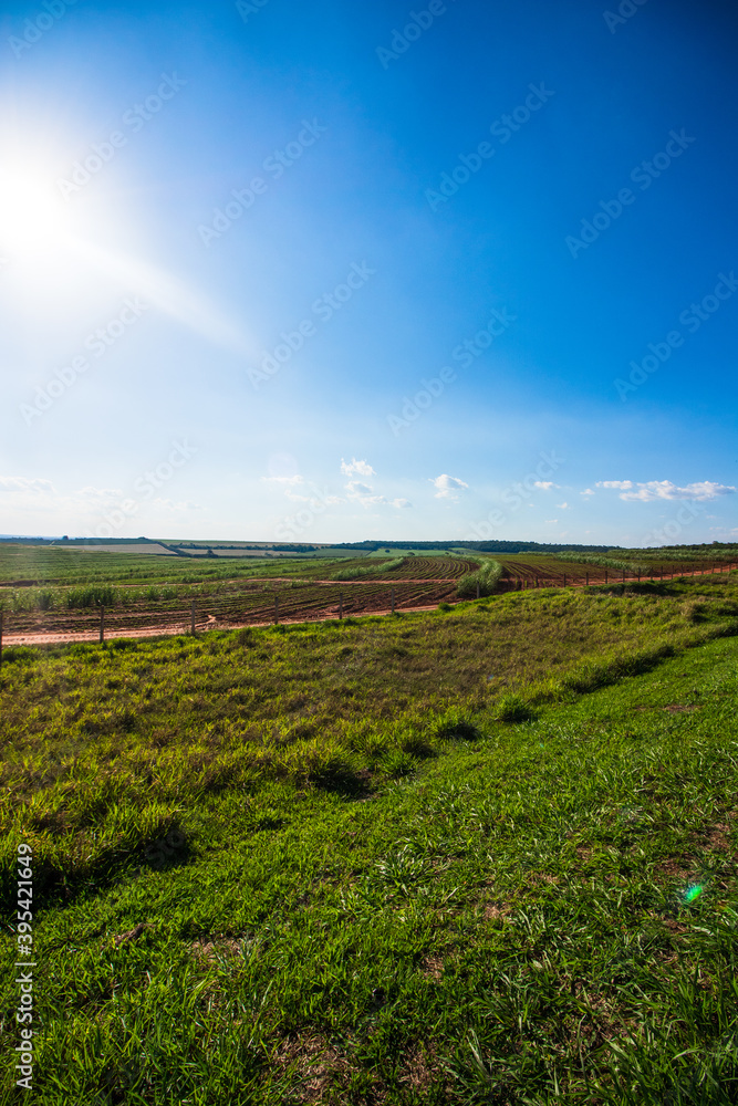 Beautiful rural plantation of sugar cane. Farm field concept image