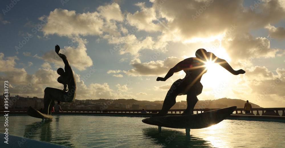 Fuente de los surfistas, Paseo de Riazor, A Coruña, Galicia, España