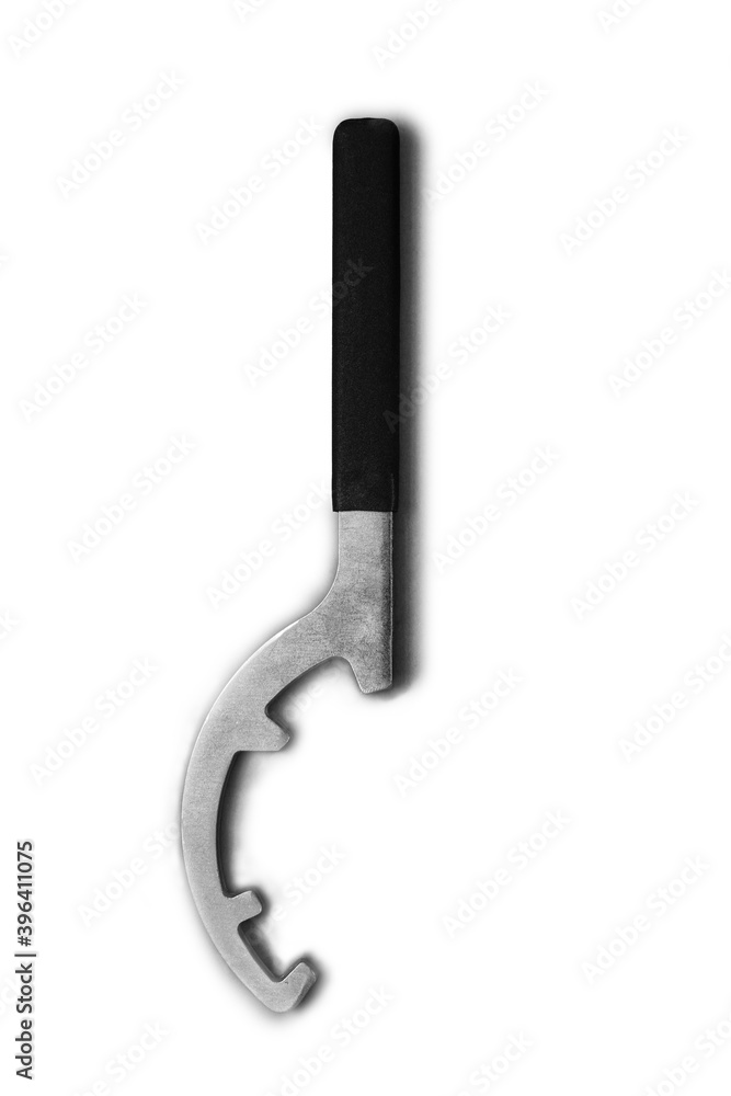 Feuerwehr Kupplungsschlüssel auf weissem Hintergrund. Kupplungsschlüssel freigestellt.