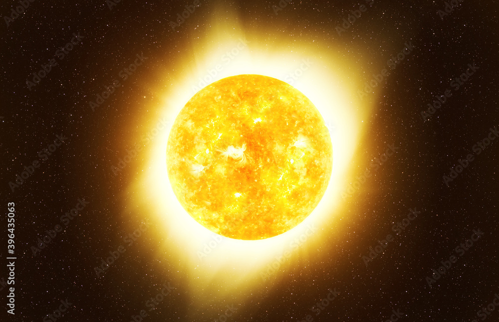 Bright Sun against dark starry sky in Solar System, elements of this image furnished by NASA