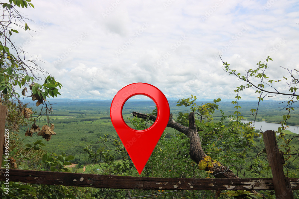 Locations or red pins indicate the location of various tourist attractions in Bueng Kan Province Thailand 3D Illustrations - Illustration