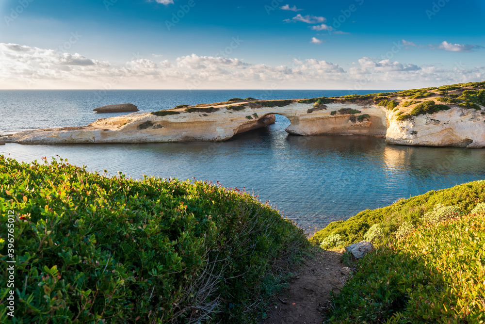 Limestone rock with arch, S'`Archittu di Santa Caterina in Oristano Province, Sardinia, Italy
