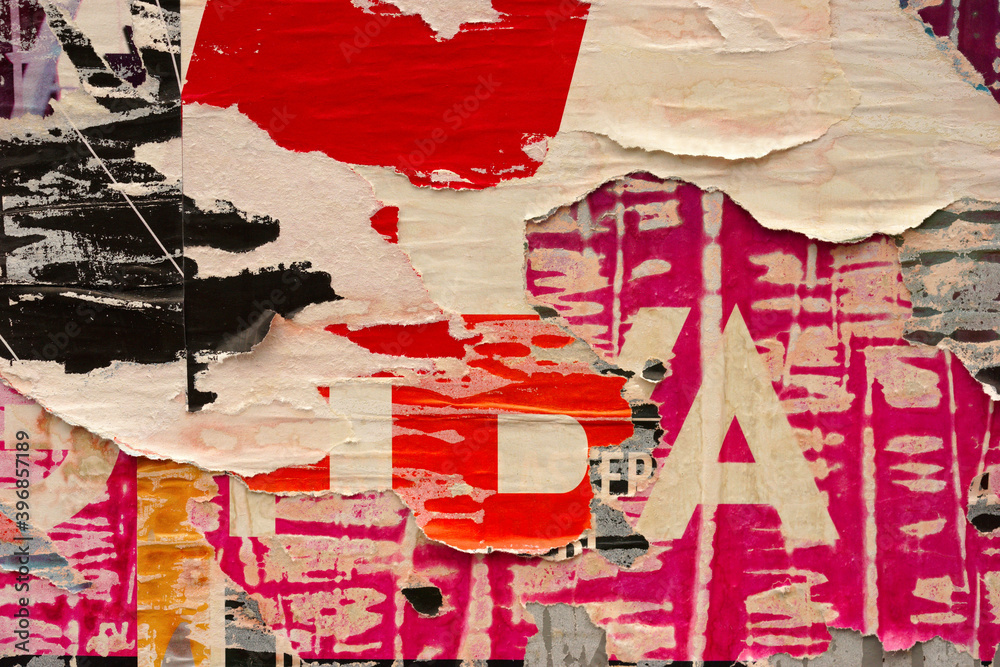 Old ripped torn posters grunge texture background creased crumpled paper backdrop placard surface urban street posters