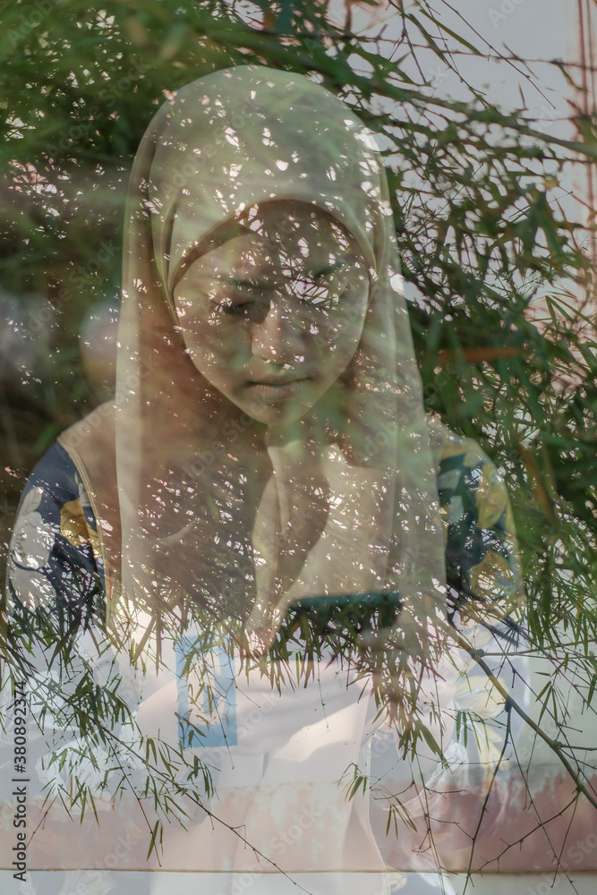Christmas gift cookie mix in glass jar on wooden table. Layers of flour, cocoa powder, sugar. Ingredients for ginger bread. Copy space for your text
