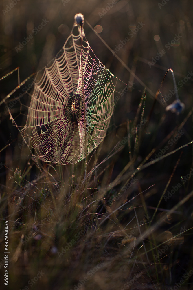 spider web with dew drops