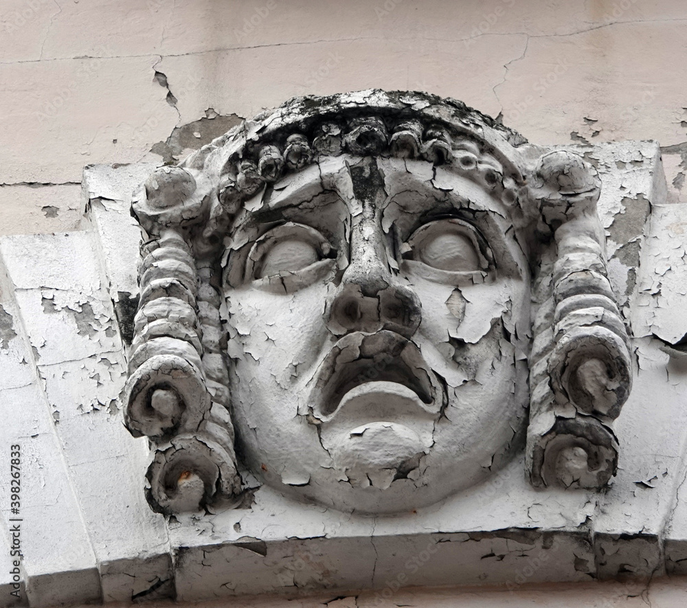Building facade decor with human face