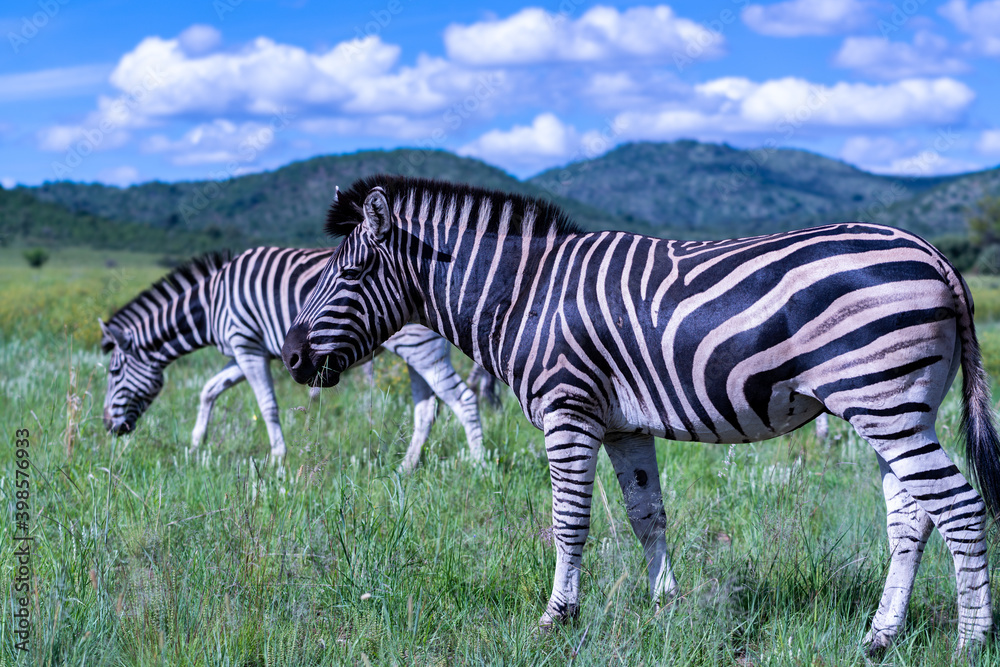 Zebra grazing in the great African grassland