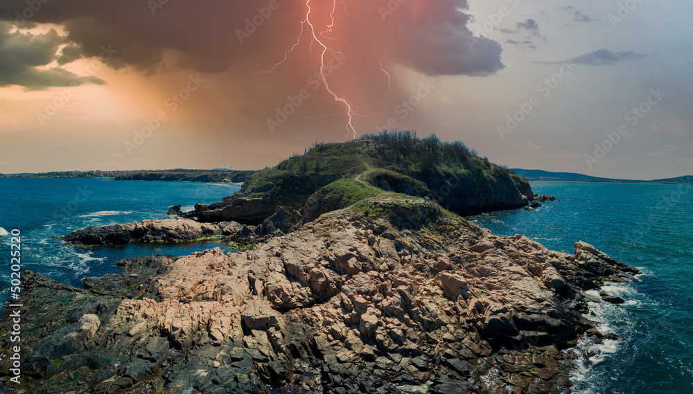 Old flooded stone quarry, site of natural granite stone mining