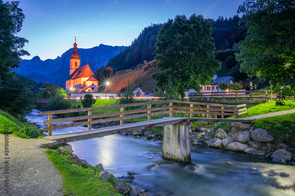 St. Sebastian Parish Church at dusk Ramsau in German Alps. Bavaria