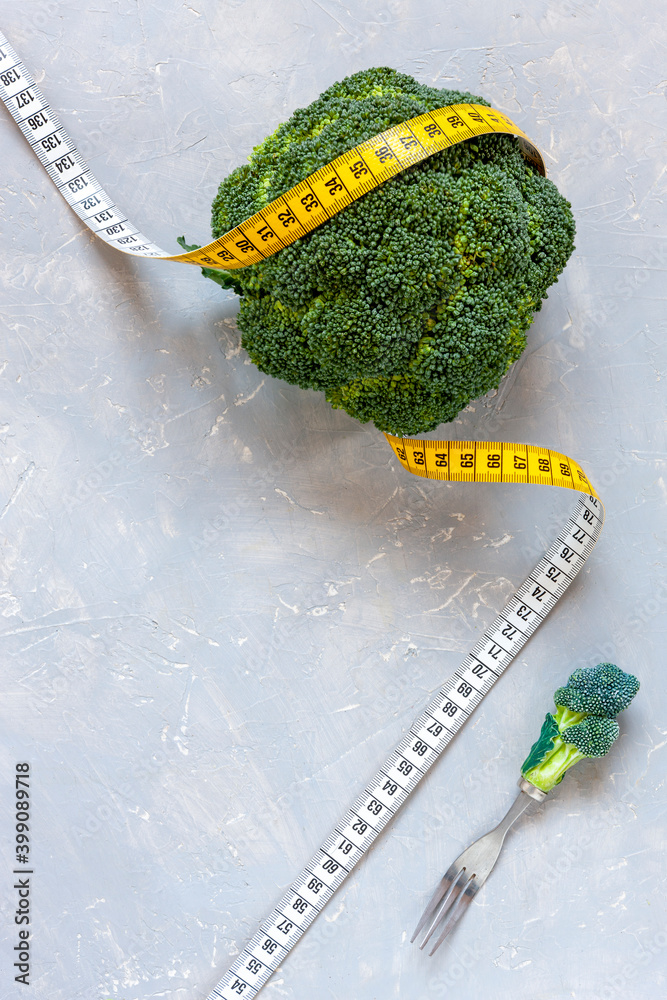 Broccoli and centimeter. Fresh egetable, concept for weight loss, diet, ketogenic diet, intermittent fasting.