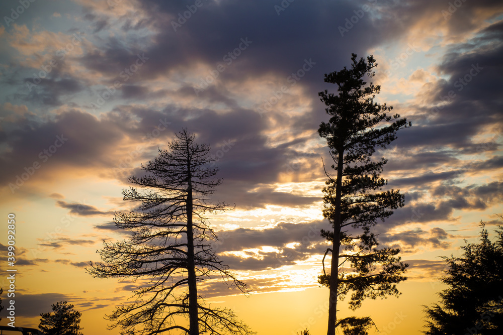 sunset between two trees in Nebraska