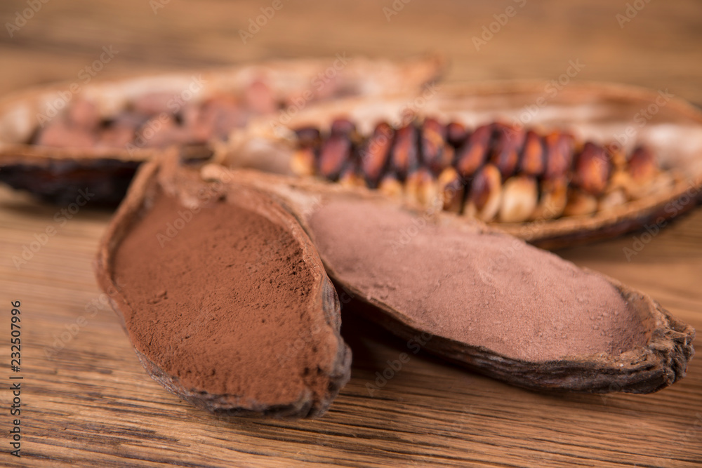 Partial blurred wooden desk table with knitted scarf and pink gift Vintage tinted,hygge, cozy home concept.