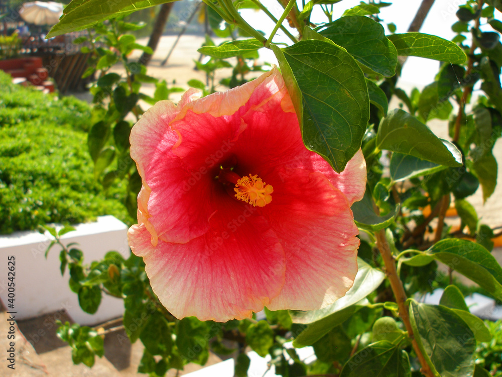 tropical flower red hibiscus, genus of plants of the Malvaceae family, floral background