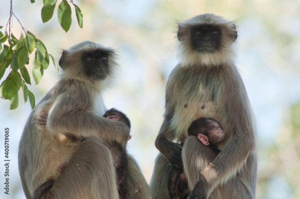 Southern plains gray langurs Semnopithecus dussumieri. Females and their cubs. Sasan. Gir Sanctuary. Gujarat. India.
