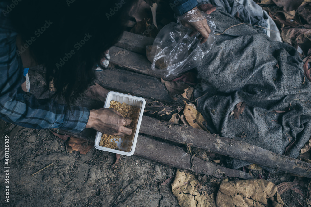 poor people,homeless or beggar begging for help sitting at dirty slum.concept for poverty hunger,human rights,donate and charity for underprivileged children in third world